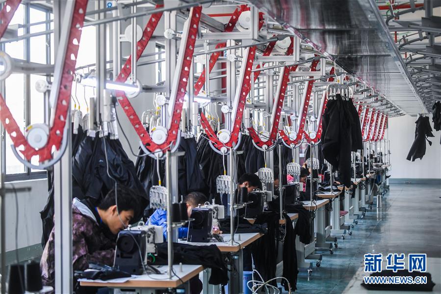 11月20日拍攝的位于烏鎮(zhèn)的嘉興恒美服飾有限公司現(xiàn)代化的成衣車間。  新華社記者 徐昱 攝