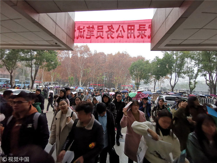 2018年12月2日,湖北武漢一公務(wù)員考點(diǎn),密密麻麻的考生進(jìn)向考場。當(dāng)日,2019年度中央機(jī)關(guān)及其直屬機(jī)構(gòu)公務(wù)員招考筆試開考。楚林/視覺中國