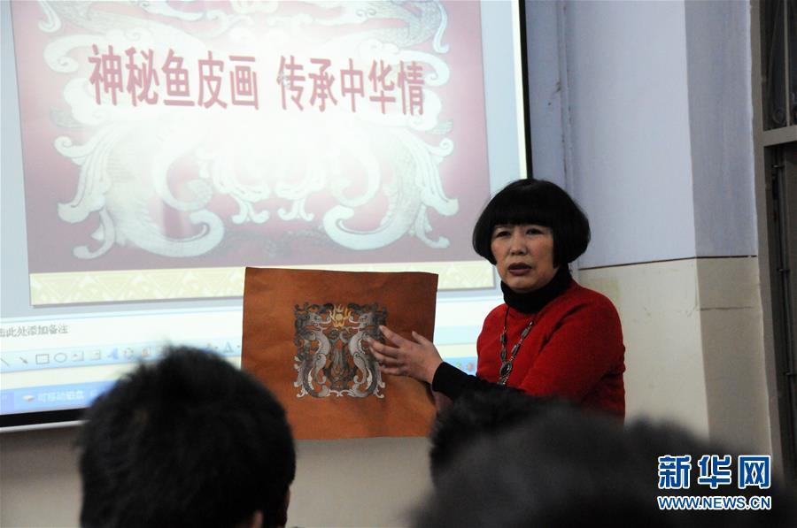 張琳在講授魚皮畫制作技藝(2011年12月4日攝)。國(guó)家級(jí)非物質(zhì)文化遺產(chǎn)赫哲族魚皮制作技藝是我國(guó)赫哲族傳統(tǒng)手工藝術(shù)。作為這項(xiàng)技藝的黑龍江省級(jí)傳承人,十余年來,張琳一直從事魚皮畫的研究和創(chuàng)作,并通過做推廣、開講座、辦活動(dòng),讓更多年輕人了解并喜歡上這一傳統(tǒng)手工藝,將這項(xiàng)瀕臨失傳的藝術(shù)更好地傳承下去。新華社記者 王凱 攝