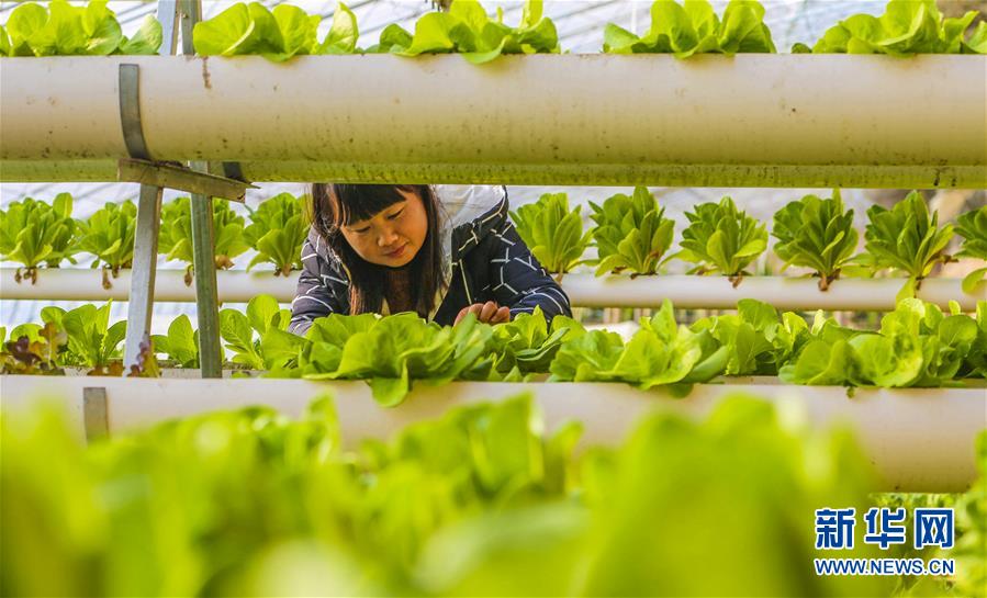 12月3日,工作人員在大廠回族自治縣一家農(nóng)業(yè)園打理無(wú)土栽培的蔬菜。