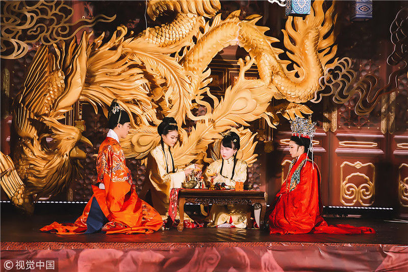 新郎趙佳瑞是嘉興人,今年28歲,比黃聰小兩歲,是一位攝影師。因?yàn)樵?jīng)給黃聰拍攝漢服,他知道她有很多漢服,就經(jīng)常向她借漢服給客人拍攝,經(jīng)常接觸就相戀了?,F(xiàn)在夫妻倆在當(dāng)?shù)亻_(kāi)了專門(mén)拍攝古風(fēng)的攝影工作室。工作室就三個(gè)人,除了小夫妻,還有黃聰?shù)拈|蜜楊曉晨做化妝師。在婚禮上,這些小姐妹都穿上漢服,像一個(gè)個(gè)漂亮的宮女。