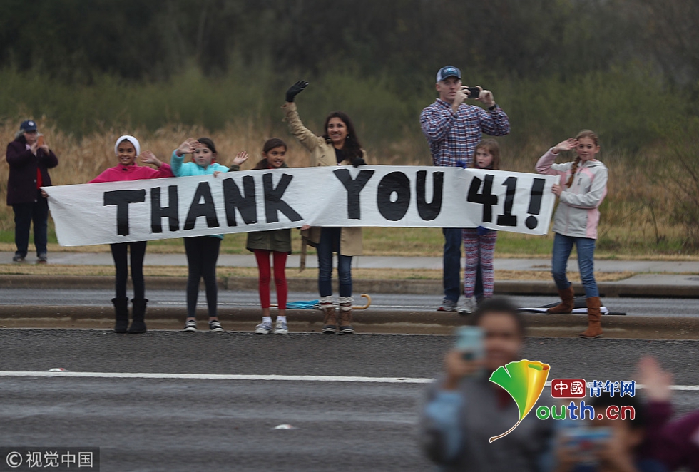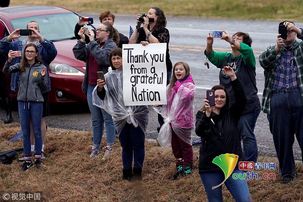 當(dāng)?shù)貢r(shí)間2018年12月6日,美國(guó)德州,美國(guó)前總統(tǒng)老布什將落葬德州農(nóng)機(jī)大學(xué)布什總統(tǒng)圖書(shū)館和博物館后面的布什家族墓地,與他半年前去世的妻子芭芭拉以及早夭的女兒蘿賓葬在一起。當(dāng)天,一輛葬禮專列將載著老布什的棺槨及其親朋,從休斯敦郊區(qū)開(kāi)往老布什的最后安葬之地、德州農(nóng)機(jī)大學(xué)。這列火車的第六節(jié)車廂側(cè)面是透明的,人們可以在鐵軌旁看到老布什蓋著國(guó)旗的靈樞。圖片作者:Joe Raedle/視覺(jué)中國(guó)