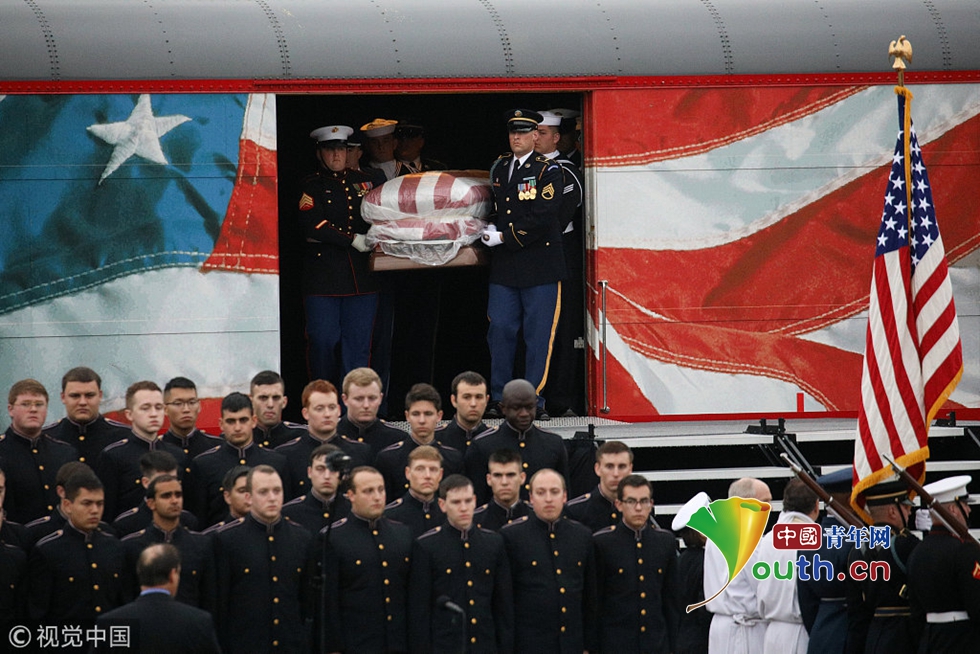 美國(guó)第41任總統(tǒng)喬治·赫伯特·沃克·布什(老布什)的靈柩從他的家鄉(xiāng)休斯頓運(yùn)抵首都華盛頓市郊,他的遺體將從當(dāng)天晚上開(kāi)始放于國(guó)會(huì)圓形大廳,供民眾瞻仰。