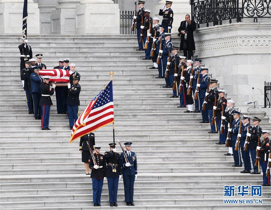 美國(guó)前總統(tǒng)老布什的遺體3日下午運(yùn)抵首都華盛頓,安放在國(guó)會(huì)大廈圓頂大廳,接受吊唁。