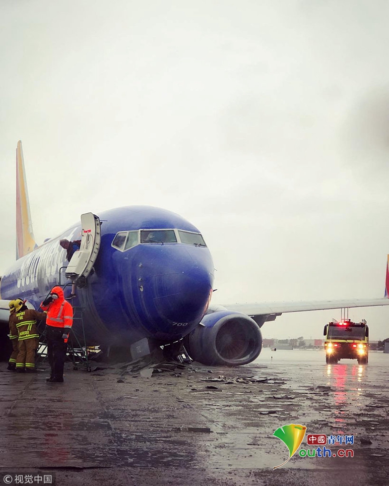 美國(guó)一架載117人航班降落時(shí)失控 沖出跑道撞上護(hù)欄