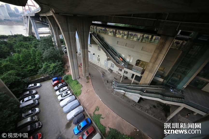 2018年5月29日,重慶,魔幻重慶又雙叒叕放大招!還有一個(gè)獨(dú)特的亮點(diǎn),重慶軌道交通3號(hào)線(xiàn)銅元局站,出口由一段長(zhǎng)梯銜接上方立交橋和下方的路面,與全國(guó)最高城市立交橋蘇家壩立交組成了獨(dú)特風(fēng)景,許多游客專(zhuān)門(mén)趕來(lái)拍照。