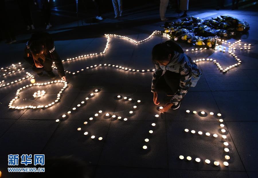 12月12日,學(xué)生將組成紀(jì)念圖案的白燭擺放整齊。 當(dāng)晚,南京東南大學(xué)學(xué)生在校園舉行“燭光祭”活動,悼念南京大屠殺遇難同胞。學(xué)生們點(diǎn)燃白燭,獻(xiàn)花默哀,表達(dá)哀思。 新華社記者 孫參 攝