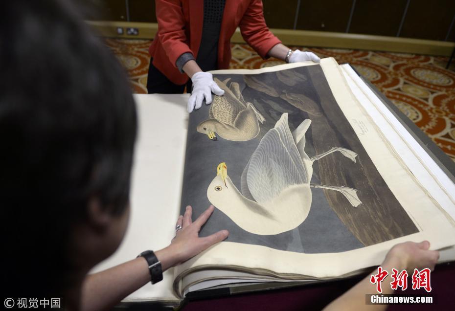 《美國鳥類》由美國鳥類學家、畫家和博物學家詹姆斯·奧杜邦在1827年創(chuàng)作,真實描繪了400多種生活在美國的鳥類,其畫作大小與實物完全一樣。圖片來源:視覺中國