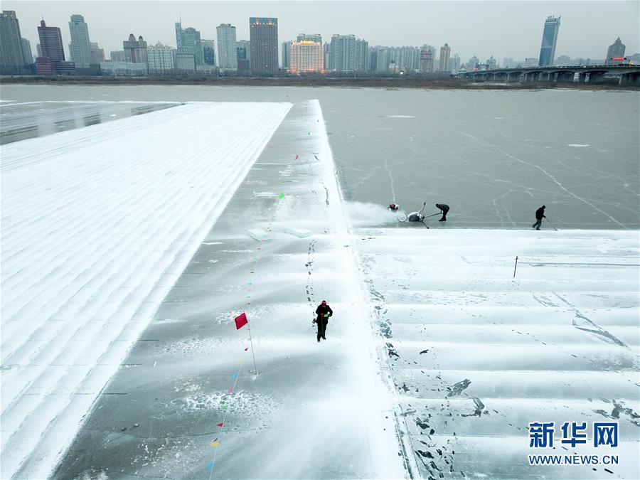 2018年12月13日,黑龍江省哈爾濱市,國內(nèi)最大的雪雕盛會太陽島雪博會正在緊鑼密鼓建設(shè)中。
