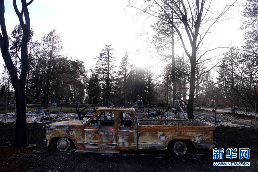 這是12月7日在美國(guó)加利福尼亞州比尤特縣天堂鎮(zhèn)拍攝的山火廢墟。