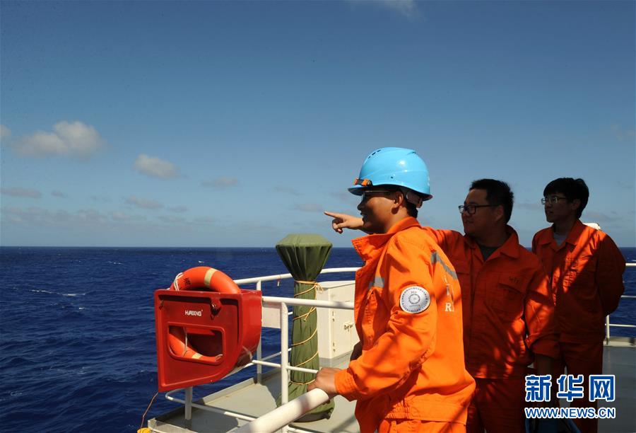 “彩虹魚”科考團(tuán)隊隊員搜尋浮出海面的著陸器(12月15日攝)。