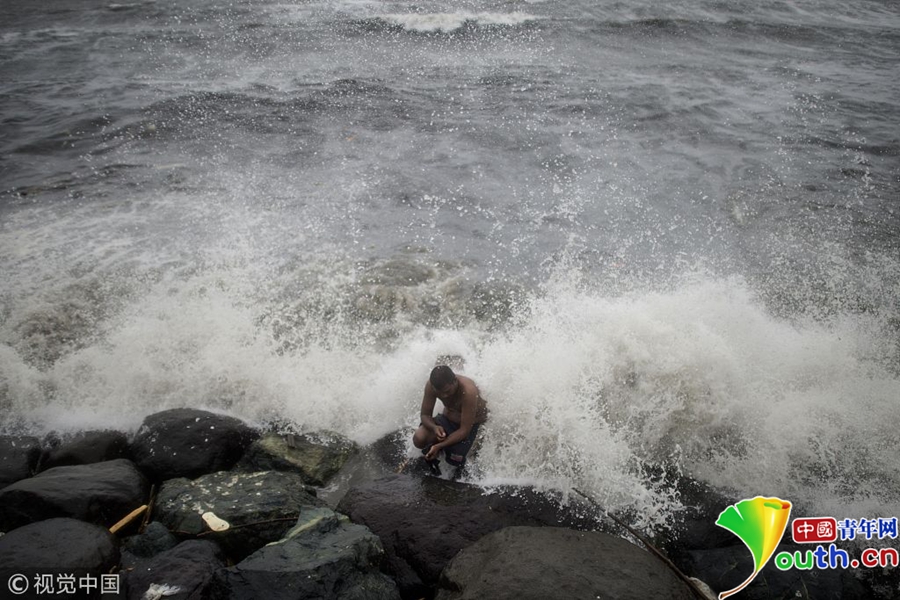 當(dāng)?shù)貢r(shí)間2018年12月16日,印度欽奈,颶風(fēng)“佩太”正向印度東海岸逼近,引發(fā)狂風(fēng)巨浪。