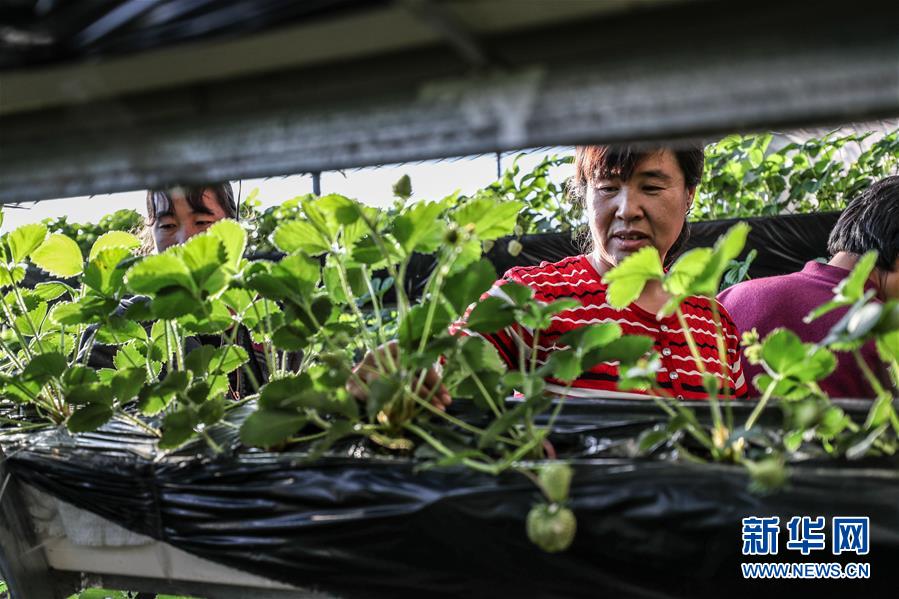 12月19日,農(nóng)戶在大棚里管理草莓。 2017年5月,遼寧省鐵嶺市昌圖縣大四家子鎮(zhèn)方家船口村利用土地確權(quán)成果,由村兩委班子成員領(lǐng)辦創(chuàng)辦了昌圖久晟果木蔬菜種植專業(yè)合作社。到2018年9月,合作社利用產(chǎn)業(yè)扶貧資金、壯大村集體經(jīng)濟(jì)扶持資金、村集體用地和村民入股資金建成了11個(gè)“股份制大棚”,主要種植草莓等作物,產(chǎn)品通過電商銷往云南、四川、北京、上海等地,預(yù)計(jì)第一期可為265名貧困戶每人分紅860元。 新華社記者潘昱龍攝