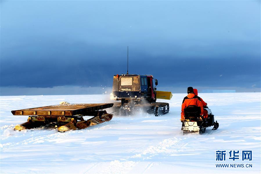 探冰小組成員開(kāi)展海冰探路(11月30日攝)。 新華社記者 劉詩(shī)平攝