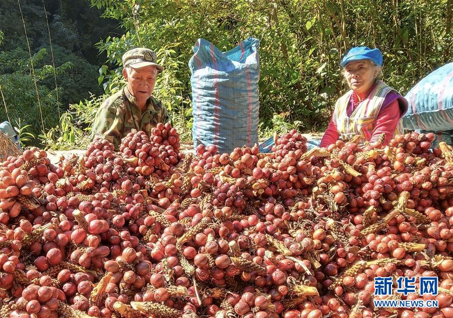 獨龍江鄉(xiāng)馬庫村村民在整理收獲的草果,準備賣到外地市場(2018年11月10日攝)。 新華社發(fā)(楊時平 攝)