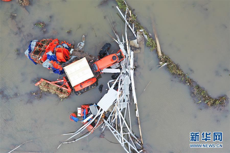 被海浪沖毀的各種汽車或卡在樹(shù)間或趴上殘墻。