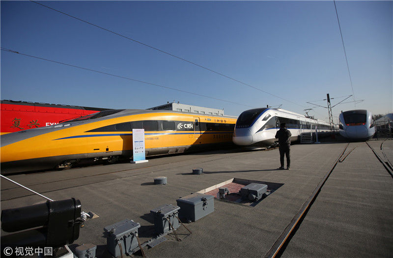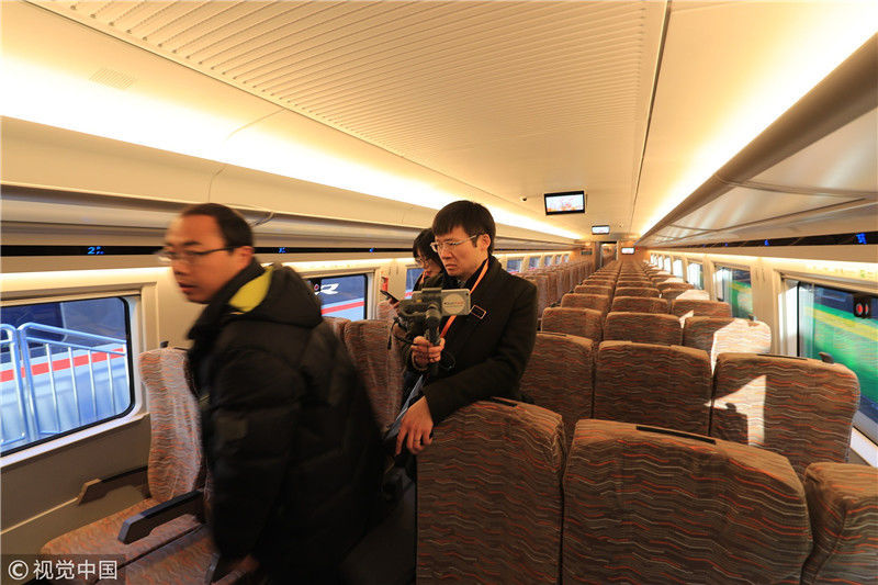 2018年12月24日,北京,中國鐵路科技創(chuàng)新成果展在國家鐵道試驗(yàn)中心舉行。新型復(fù)興號(hào)動(dòng)車組實(shí)車首次公開亮相,現(xiàn)場(chǎng)體驗(yàn)乘車運(yùn)行。視覺中國
