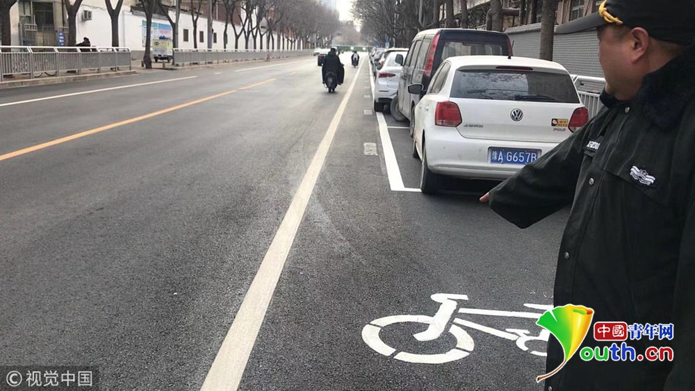 “你看看,自行車道被新劃的停車位占住了,路邊沒(méi)有停車還好,一旦有汽車,我騎車只能走快車道,基本沒(méi)有騎車的位置了?!笔忻駨埾壬f(shuō),“這里最多能容下一輛電動(dòng)車通行,不走機(jī)動(dòng)車道你說(shuō)走哪?”