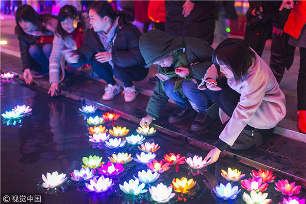 2017年12月31日,南京銀杏湖樂(lè)園跨年夜,燈光璀璨。