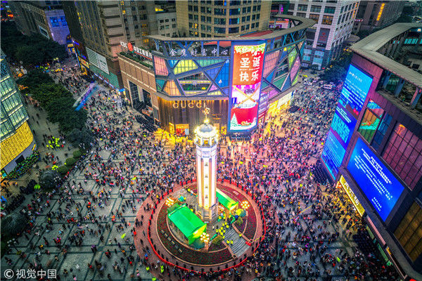 2017年12月31日晚,重慶市渝中解放碑步行街,10萬(wàn)人齊聚解放碑,歡歡喜喜度過(guò)2018跨年夜。每年重慶的跨年夜,人們都會(huì)齊聚解放碑,縱觀國(guó)內(nèi)大城市的跨年夜,極少有哪座城市有重慶這么熱鬧,這已經(jīng)成為中國(guó)城市中最有特色的跨年活動(dòng)之一。解放碑作為重慶最具標(biāo)志性的建筑之一,可謂意義非凡。雖然周邊建筑越來(lái)越高,使相形之下的解放碑顯得越來(lái)越小,但依然撼動(dòng)不了解放碑在重慶人民心畝中的地位。
