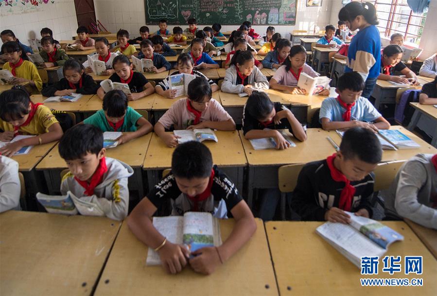 在云南省金平苗族瑤族傣族自治縣者米鄉(xiāng)中心小學(xué),孩子們在教室里上課。云南省逐步在人口較少民族和“直過民族”聚居區(qū)實(shí)行從學(xué)前教育到高中階段的14年免費(fèi)教育(11月13日攝)。新華社記者 胡超 攝