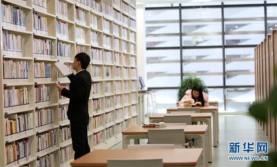 12月27日,在天津?yàn)I海新區(qū)圖書館,工作人員(左)在閱覽室中擺放圖書。 濱海新區(qū)圖書館位于天津?yàn)I海文化中心,2017年10月1日正式開館,設(shè)計(jì)立意為“濱海之眼”和“書山有路勤為徑”。圖書館現(xiàn)有藏書60多萬冊(cè),一年多來接待讀者約280萬人次,已成為濱海新區(qū)的文化“新地標(biāo)”。 新華社記者伍婧丹攝