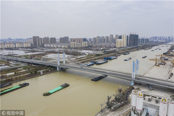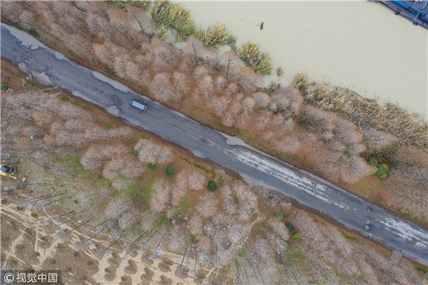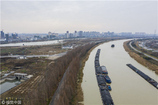 2018年12月27日,江蘇淮安,航拍京杭大運河淮安段冬日景色。吳揚/視覺中國