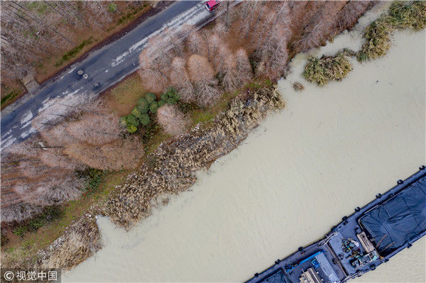 航拍京杭古運河冬景