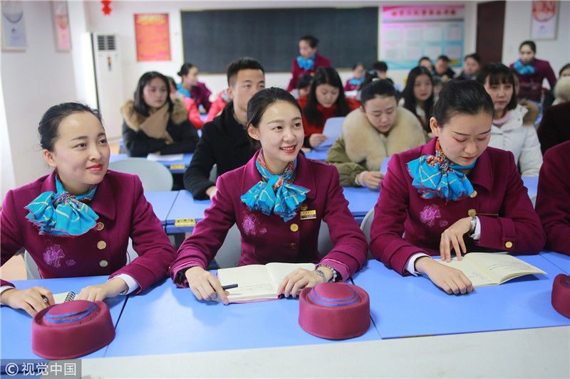 2018年12月27日,四川成都,為備戰(zhàn)即將開(kāi)通的成雅鐵路,中國(guó)鐵路成都局集團(tuán)有限公司成都客運(yùn)段動(dòng)車二隊(duì)對(duì)成雅動(dòng)車的乘務(wù)人員進(jìn)行理論、形體、服務(wù)禮儀等內(nèi)容的培訓(xùn)。
