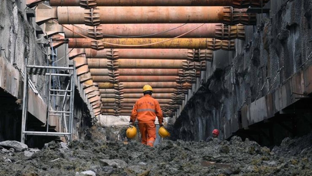 2019年1月1日,工作人員在濟南軌道交通1號線創(chuàng)新谷站引導乘客。