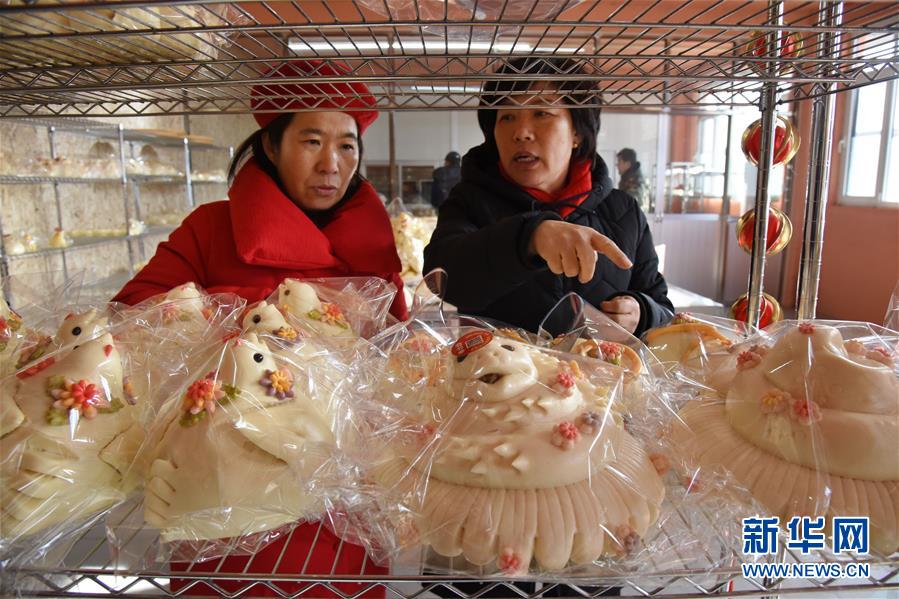 1月8日,工作人員在手工制作花餑餑。  新華社記者 丁洪法 攝