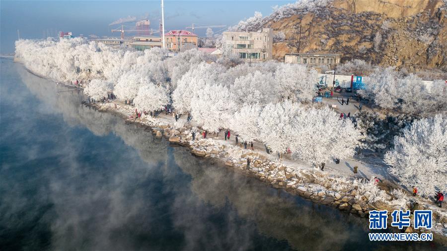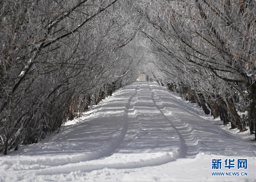 當日,吉林省吉林市出現霧凇景觀,松花江畔的樹木仿佛披上了銀色盛裝。