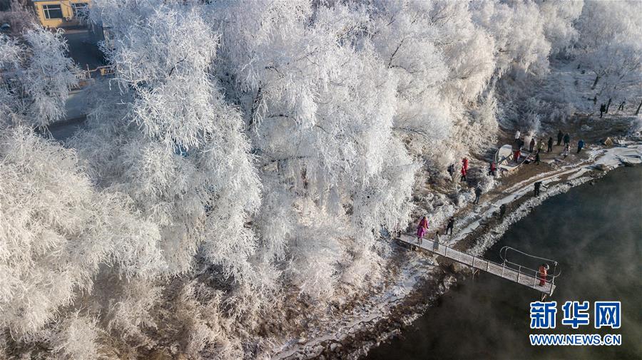 當(dāng)日,吉林省吉林市出現(xiàn)霧凇景觀,松花江畔的樹木仿佛披上了銀色盛裝。
