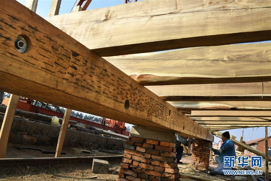 劉雙林在用墨斗測(cè)量安裝角度(1月10日攝)。新華社記者 李紫恒 攝