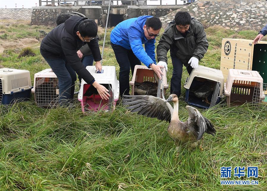 1月14日,工作人員正在放飛候鳥。 新華社記者 萬象 攝