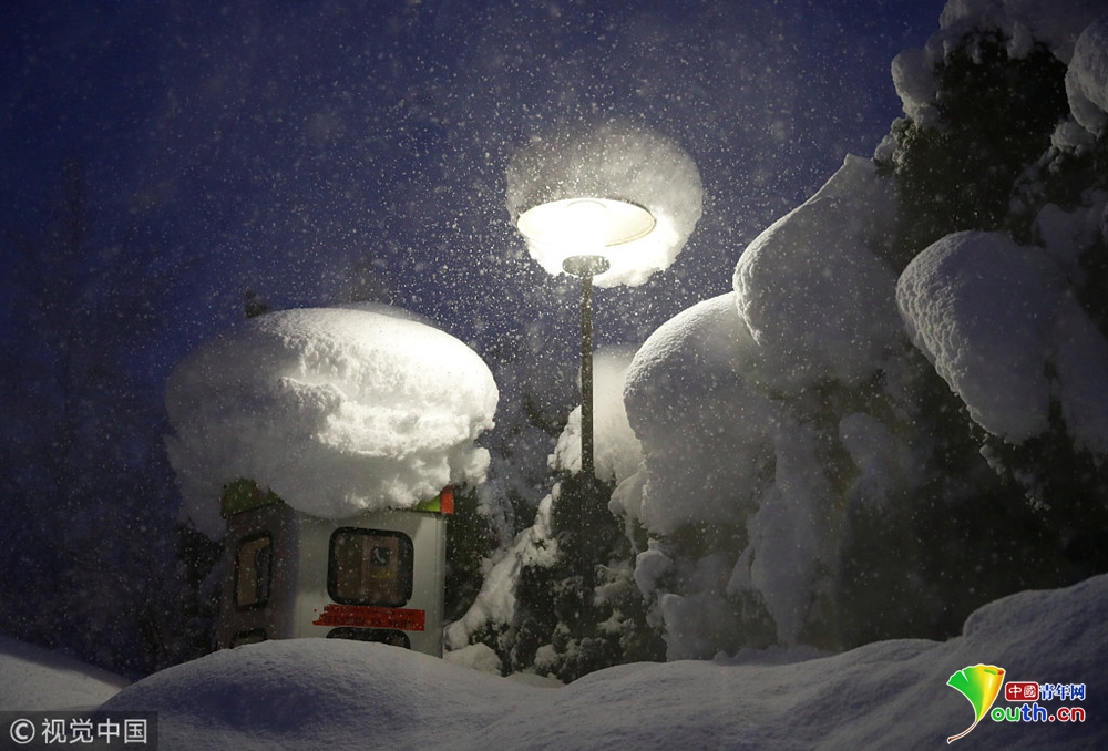 德國(guó)多地大雪紛飛 火車被困半路進(jìn)退不得