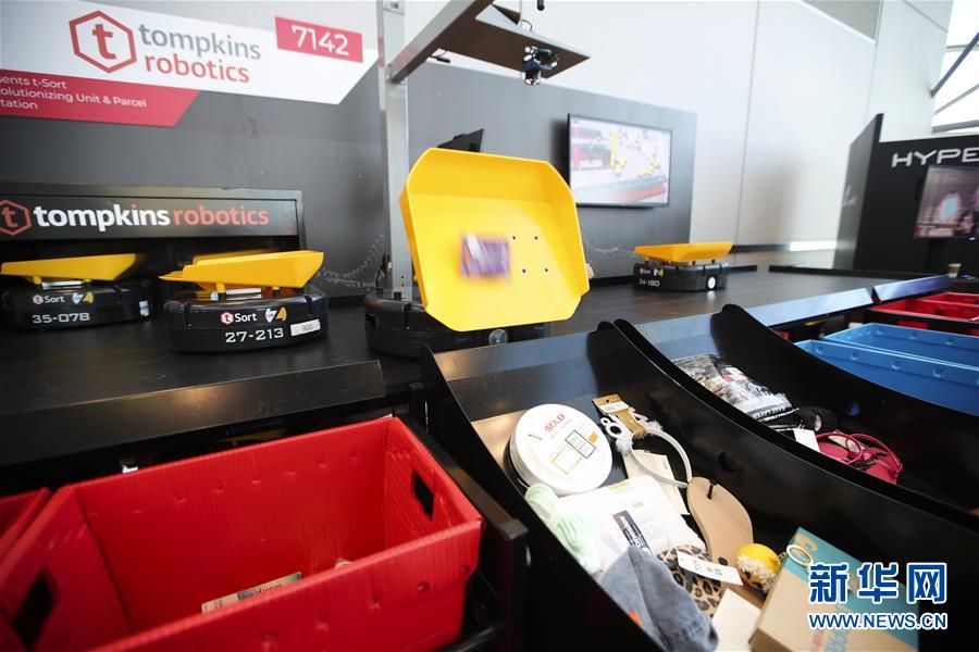 1月14日,在美國紐約舉行的全國零售商聯(lián)合會年度大會的“創(chuàng)新實驗室”展廳,自動分揀機器人在工作。 美國全國零售商聯(lián)合會年度大會于1月13日至15日在紐約舉行,許多來自世界各地的展商帶來使用新技術(shù)開發(fā)出的軟硬件產(chǎn)品,向觀眾展示未來零售業(yè)的新愿景。 新華社記者 王迎 攝