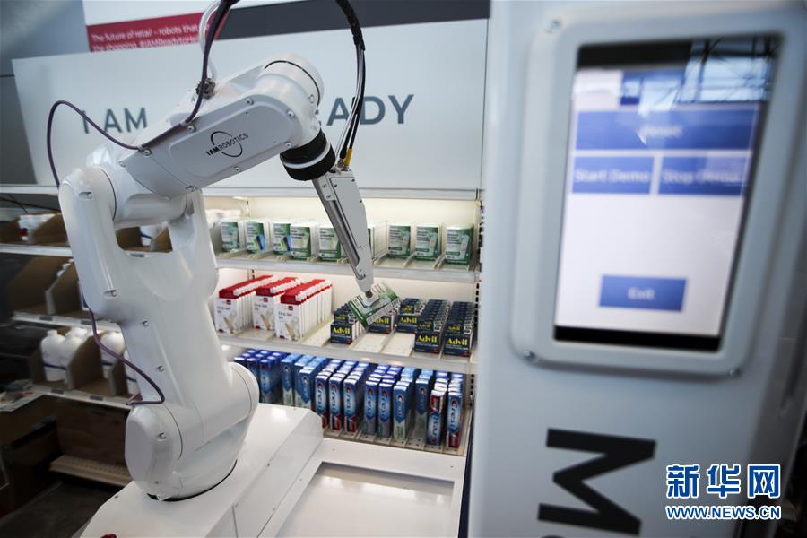 1月14日,在美國紐約舉行的全國零售商聯(lián)合會年度大會的“創(chuàng)新實驗室”展廳,自動取貨機器人根據(jù)顧客的要求抓取商品。 美國全國零售商聯(lián)合會年度大會于1月13日至15日在紐約舉行,許多來自世界各地的展商帶來使用新技術(shù)開發(fā)出的軟硬件產(chǎn)品,向觀眾展示未來零售業(yè)的新愿景。 新華社記者 王迎 攝