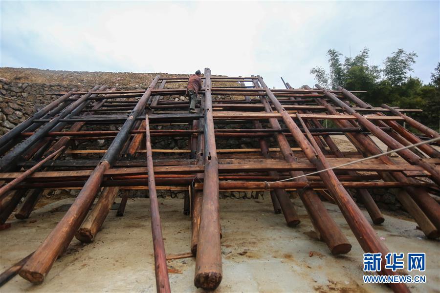 1月15日,工人在廣西融水苗族自治縣融水鎮(zhèn)夢嗚苗寨建設(shè)房屋。新華社記者 陳君清 攝
