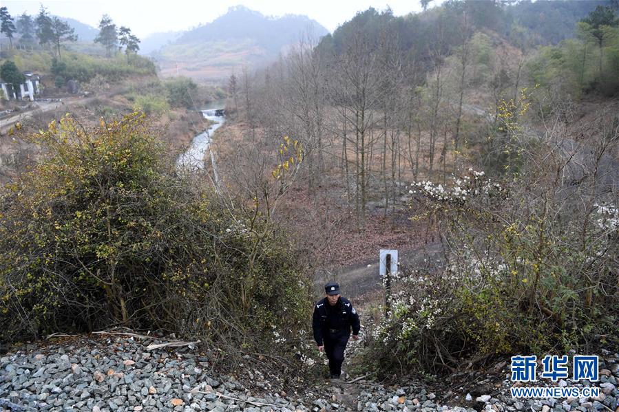 1月16日,汪茂才一早搭乘鐵路通勤車前往十公里外的三昆站,然后往回徒步巡查鐵路線。 今年52歲的汪茂才是合肥鐵路公安處黃山站派出所歙縣警務(wù)室的一名線路民警,他所在的警務(wù)室負(fù)責(zé)皖南山區(qū)皖贛鐵路線約80公里范圍內(nèi)的線路安全。從警30年來(lái),線路巡查、鐵路安全知識(shí)宣傳等是汪茂才的日常工作。多年來(lái)的徒步巡線,讓汪茂才練就了一雙快腿,十公里的路,汪茂才兩個(gè)小時(shí)就能走完。 汪茂才負(fù)責(zé)的鐵路沿線周邊村莊較多,很多房子都是沿鐵路線而建,有些村民為了圖方便,違規(guī)穿越鐵路線。加強(qiáng)對(duì)鐵路沿線居民的安全宣傳教育,成為汪茂才的一項(xiàng)重要工作,沿線村民的安全意識(shí)也越來(lái)越高。 對(duì)汪茂才這樣的線路民警來(lái)說(shuō),大多數(shù)時(shí)候都是“獨(dú)行俠”,“當(dāng)線路民警就要耐得住寂寞,守得住孤獨(dú),與大山為伴,與線路為友,盡己所能,為鐵路安全運(yùn)行保駕護(hù)航。”汪茂才說(shuō)。 新華社記者劉軍喜攝