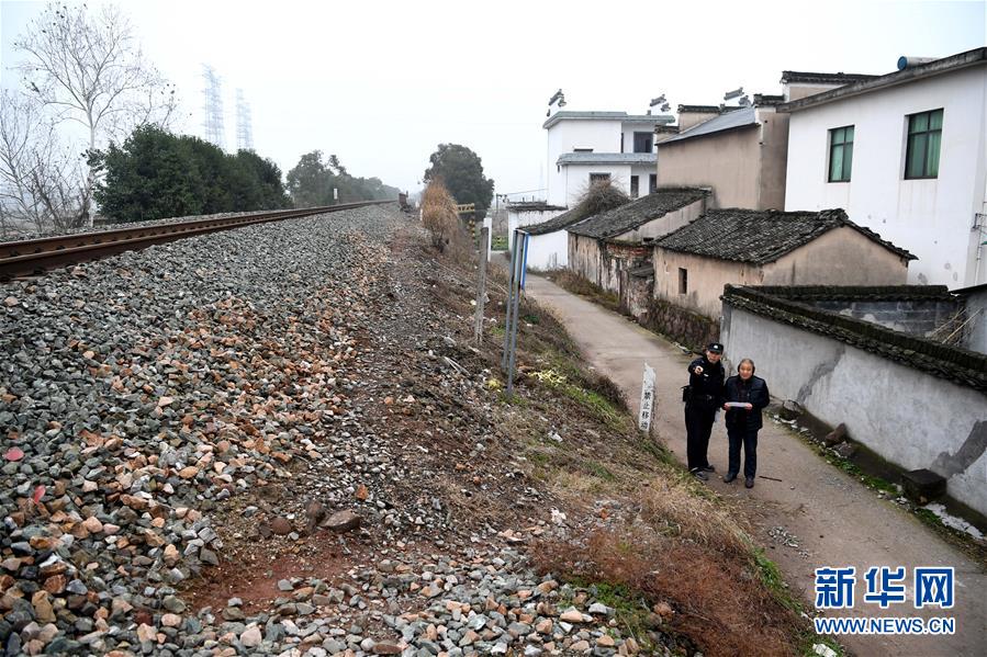 1月16日,汪茂才向鐵路沿線村民宣傳鐵路安全知識(shí)。 今年52歲的汪茂才是合肥鐵路公安處黃山站派出所歙縣警務(wù)室的一名線路民警,他所在的警務(wù)室負(fù)責(zé)皖南山區(qū)皖贛鐵路線約80公里范圍內(nèi)的線路安全。從警30年來(lái),線路巡查、鐵路安全知識(shí)宣傳等是汪茂才的日常工作。多年來(lái)的徒步巡線,讓汪茂才練就了一雙快腿,十公里的路,汪茂才兩個(gè)小時(shí)就能走完。 汪茂才負(fù)責(zé)的鐵路沿線周邊村莊較多,很多房子都是沿鐵路線而建,有些村民為了圖方便,違規(guī)穿越鐵路線。加強(qiáng)對(duì)鐵路沿線居民的安全宣傳教育,成為汪茂才的一項(xiàng)重要工作,沿線村民的安全意識(shí)也越來(lái)越高。 對(duì)汪茂才這樣的線路民警來(lái)說(shuō),大多數(shù)時(shí)候都是“獨(dú)行俠”,“當(dāng)線路民警就要耐得住寂寞,守得住孤獨(dú),與大山為伴,與線路為友,盡己所能,為鐵路安全運(yùn)行保駕護(hù)航?!蓖裘耪f(shuō)。 新華社記者劉軍喜攝