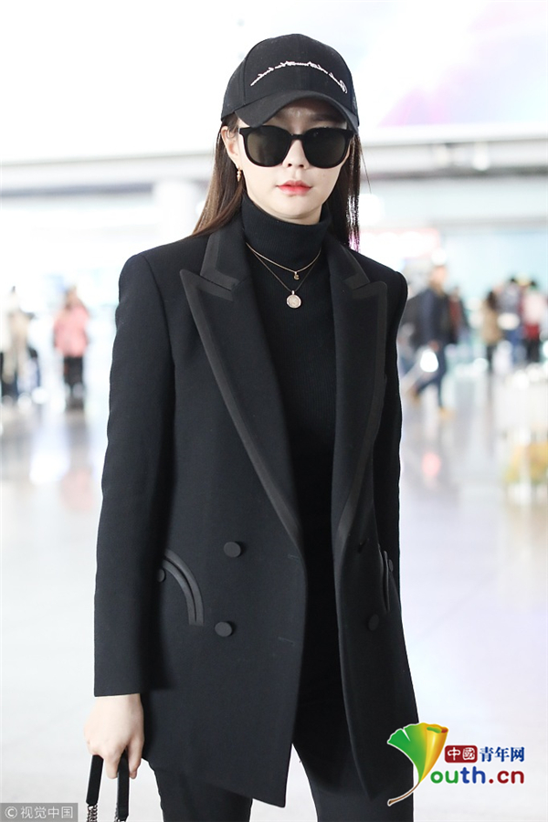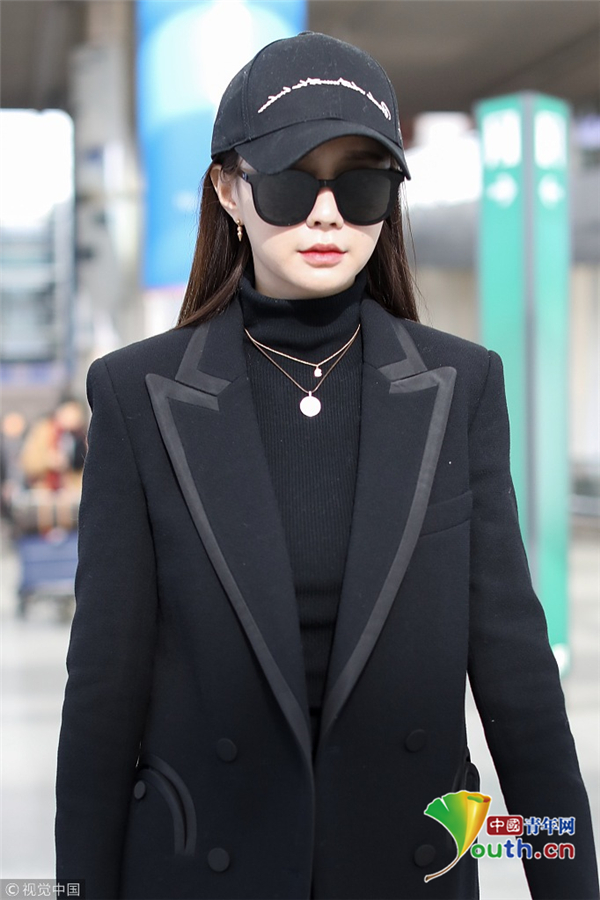 1月22日,北京,沈夢辰現身機場,全黑look又颯又美,戴著黑超遮面從昔日甜妹秒變酷girl!