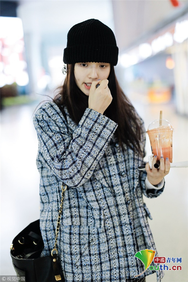 林允素顏嘟嘴賣萌大方任拍 捧果汁回眸揮手告別