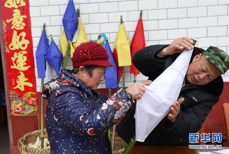 2月18日,在四川省南充市嘉陵區(qū)金寶鎮(zhèn)和祥社區(qū),65歲的李樹會(huì)(右)和老伴制作“蠐蟆燈”。 當(dāng)日是農(nóng)歷正月十四,夜幕降臨后,川渝等地?cái)?shù)萬(wàn)名群眾在四川省南充市嘉陵區(qū)金寶鎮(zhèn)匯聚,點(diǎn)亮“蠐蟆燈”,敲著鑼鼓唱著歌謠,將“蠐蟆”送到幾公里外的田邊或者河邊燒掉,祈福健康平安。星星點(diǎn)點(diǎn)的燈光在鄉(xiāng)間小路閃爍移動(dòng),場(chǎng)面壯觀熱烈。 “送蠐蟆”祈福這一習(xí)俗源于清朝,歷經(jīng)演變成為川東北地區(qū)一個(gè)古老而神秘的地方民俗節(jié)日。 新華社記者 江宏景 攝