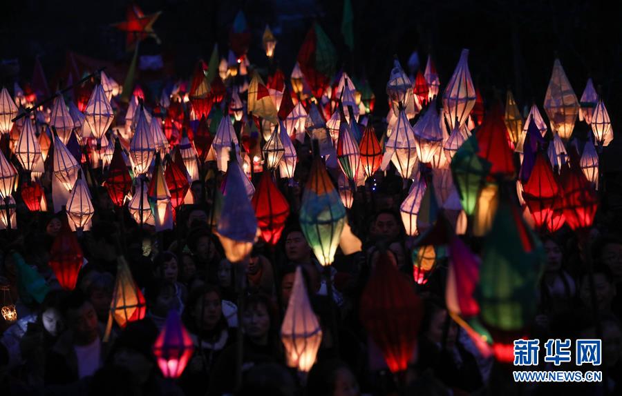2月18日,群眾在四川省南充市嘉陵區(qū)金寶鎮(zhèn)點(diǎn)亮“蠐蟆燈”。 當(dāng)日是農(nóng)歷正月十四,夜幕降臨后,川渝等地?cái)?shù)萬(wàn)名群眾在四川省南充市嘉陵區(qū)金寶鎮(zhèn)匯聚,點(diǎn)亮“蠐蟆燈”,敲著鑼鼓唱著歌謠,將“蠐蟆”送到幾公里外的田邊或者河邊燒掉,祈福健康平安。星星點(diǎn)點(diǎn)的燈光在鄉(xiāng)間小路閃爍移動(dòng),場(chǎng)面壯觀熱烈。 “送蠐蟆”祈福這一習(xí)俗源于清朝,歷經(jīng)演變成為川東北地區(qū)一個(gè)古老而神秘的地方民俗節(jié)日。 新華社記者 江宏景 攝