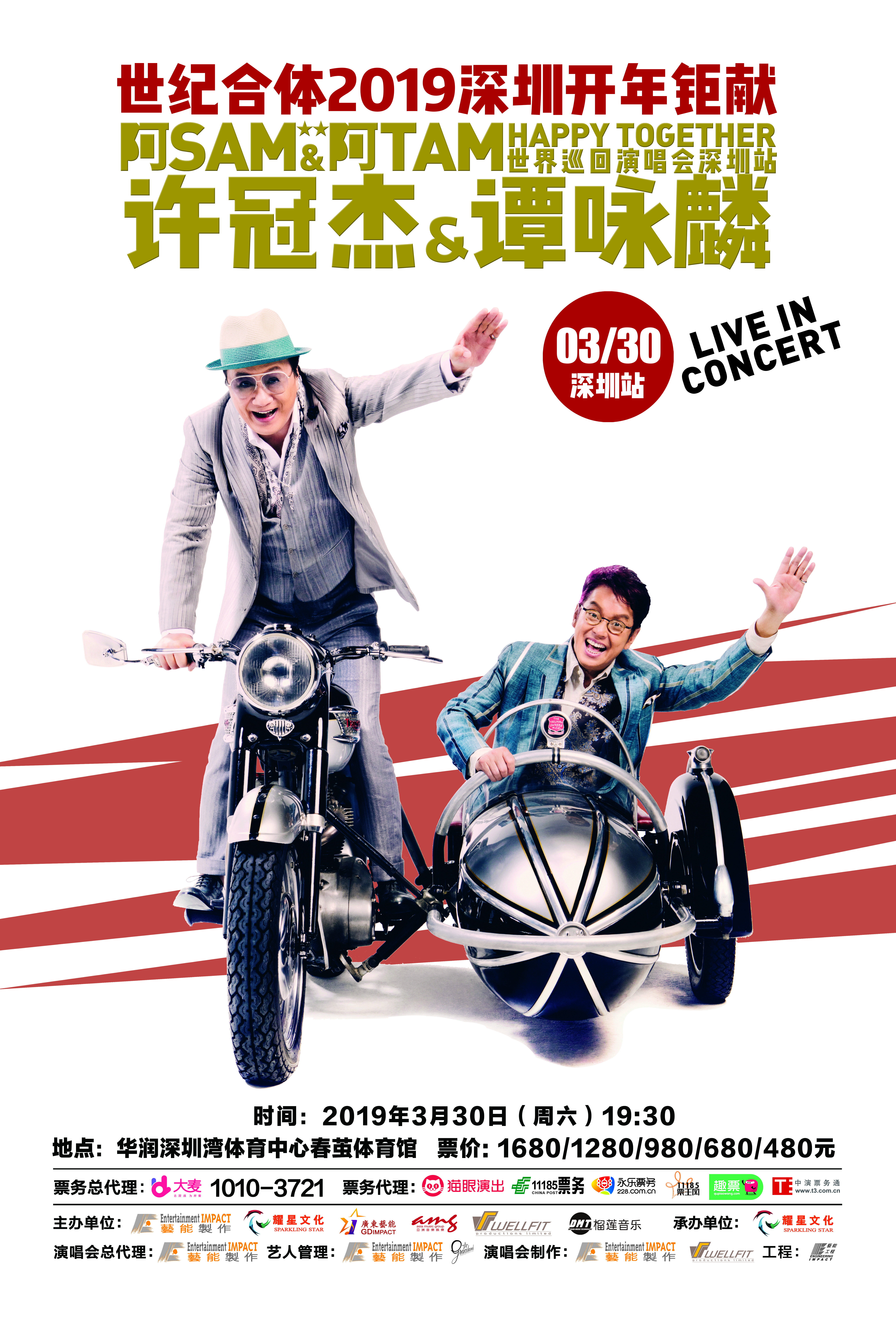 “許冠杰&譚詠麟阿Sam &阿Tam Happy Together”世界巡回演唱會于2月16日在澳門開啟了2019新春首唱,此后,他們將于3月23日和3月30日登陸佛山世紀蓮體育中心體育場和深圳灣體育中心“春繭”體育館。