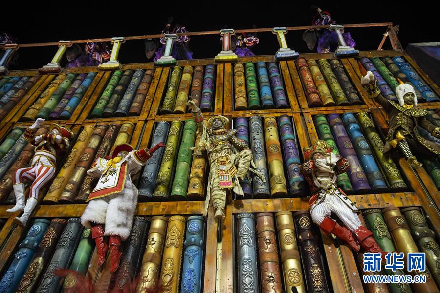 3月3日,在巴西里約熱內(nèi)盧,特級(jí)組桑巴舞校演員參加狂歡節(jié)游行。 3月3日晚,2019年里約熱內(nèi)盧狂歡節(jié)特級(jí)組桑巴舞校在桑巴大道開(kāi)始花車巡游表演。 新華社記者李明攝