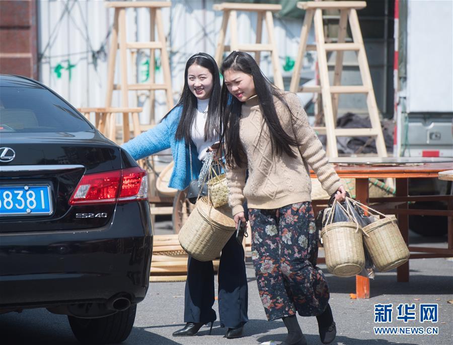 3月12日,人們在福建武夷山“柴頭會(huì)”上采購傳統(tǒng)竹制品。