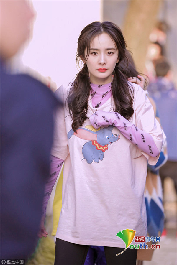2019年3月12日,湖南長沙,楊冪錄制某綜藝節(jié)目路透曝光。她扎著雙馬尾甜美可愛似少女,穿oversized的牛仔外套和寬大T恤,戴著防曬的護袖,身材十分纖細(xì)苗條。錄制期間,楊冪氣質(zhì)明艷靈動活潑,元氣滿滿青春感爆棚。