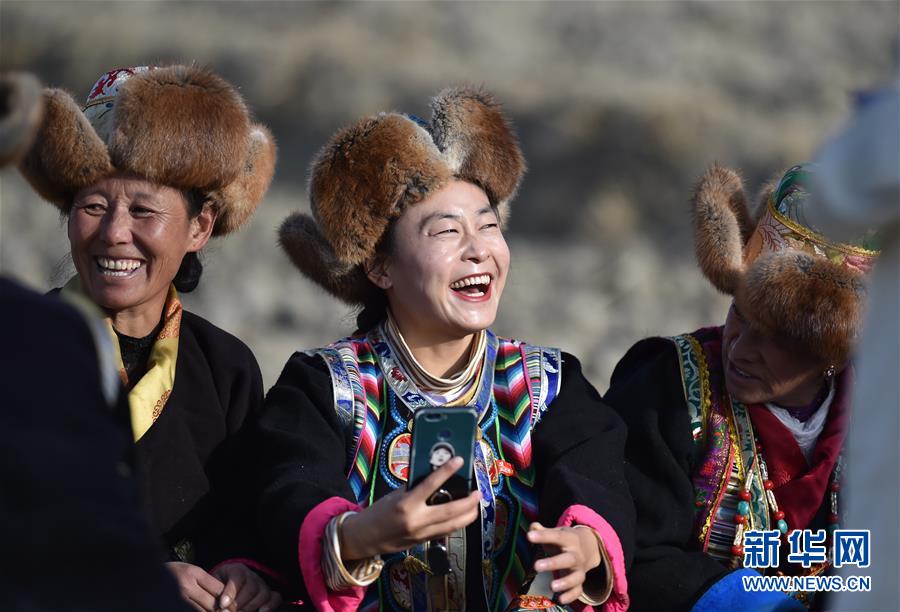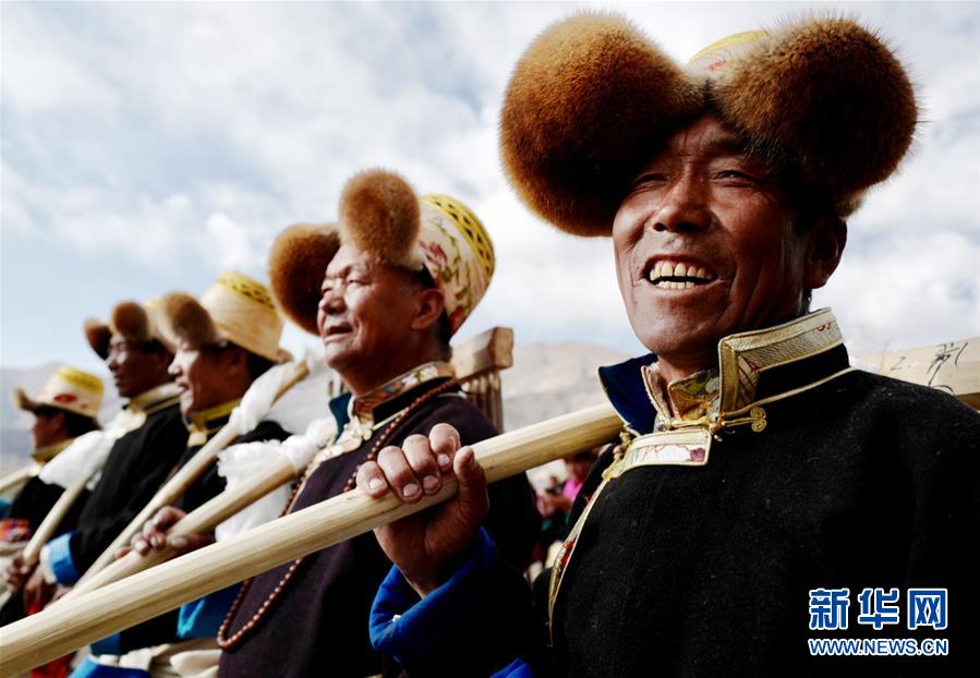 3月16日,山南市乃東區(qū)門中崗村村民在開耕儀式上。 當(dāng)日,西藏各地男女老幼身著節(jié)日盛裝,駕著一輛輛由彩旗、花朵裝扮一新的拖拉機(jī),涌向待墾的農(nóng)田,載歌載舞迎來(lái)一年一度的開耕儀式。 新華社記者 覺果 攝